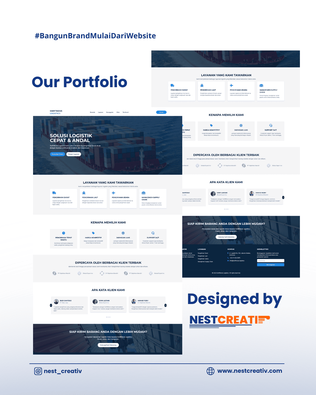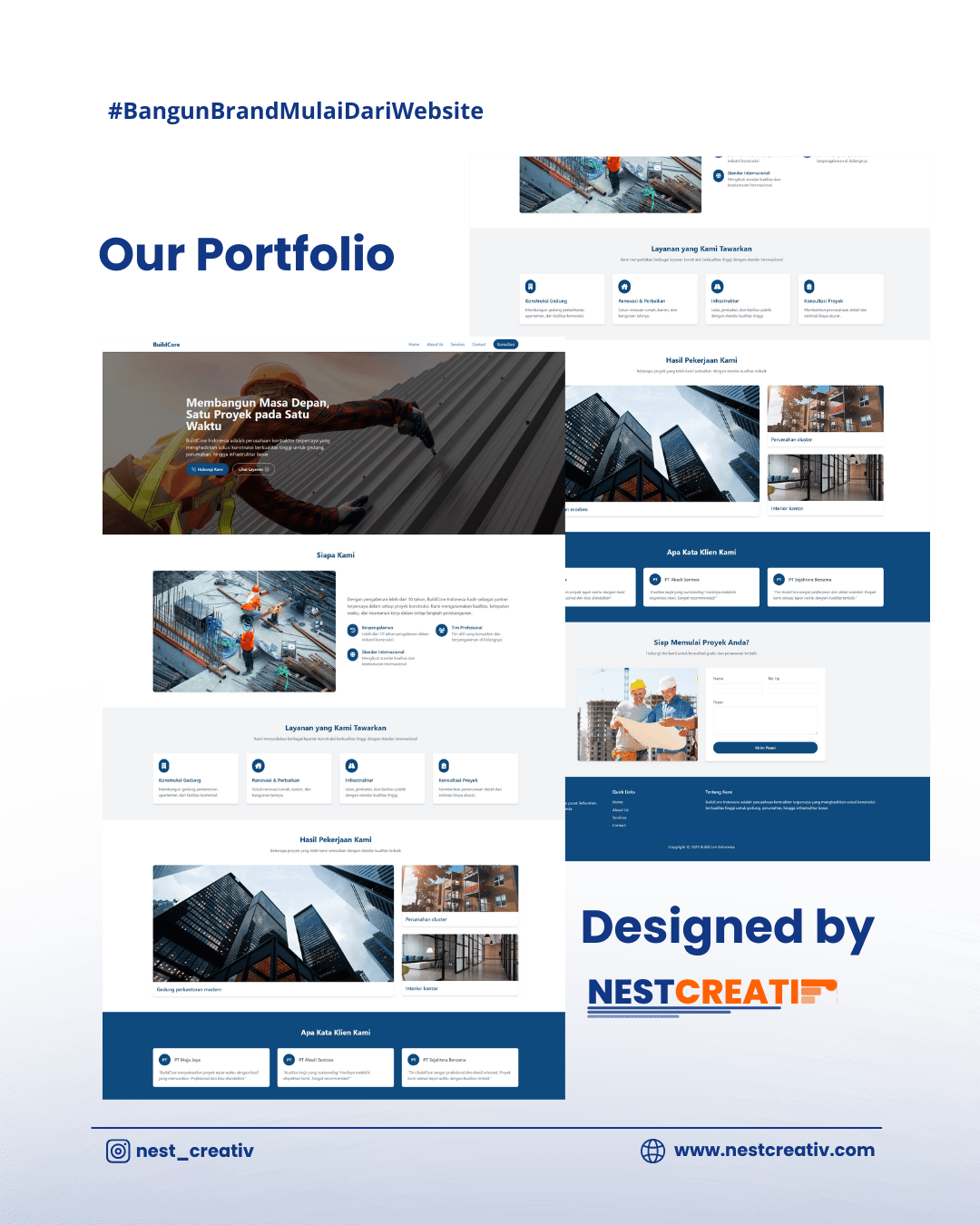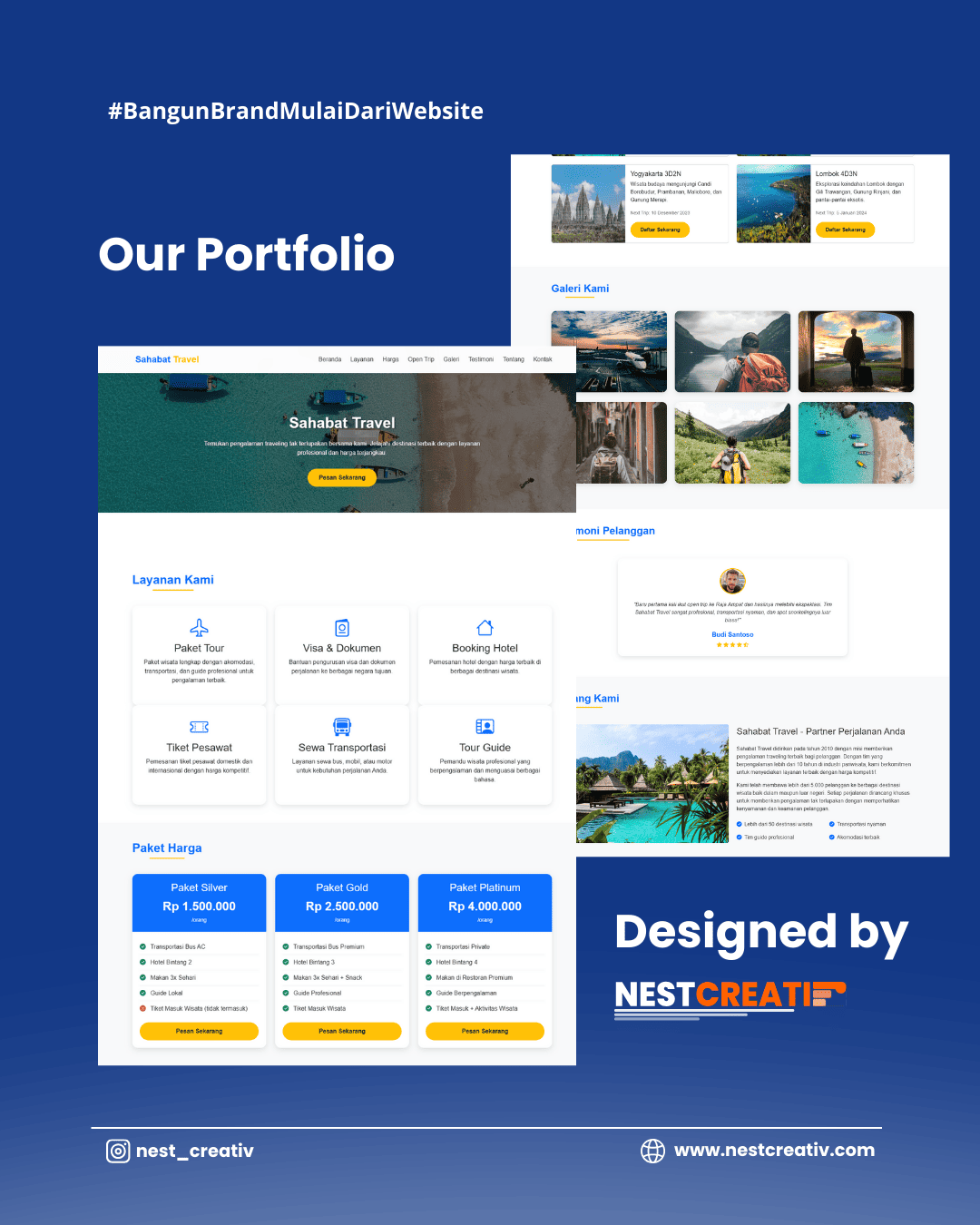 NestCreativ adalah web development agency yang berfokus membantu bisnis dan individu menghadirkan pengalaman digital yang profesional dan menarik. Dengan pendekatan kreatif dan solusi yang disesuaikan, kami menangani setiap proyek dari desain hingga pengembangan, memastikan website Anda tidak hanya terlihat bagus tapi juga fungsional dan efektif